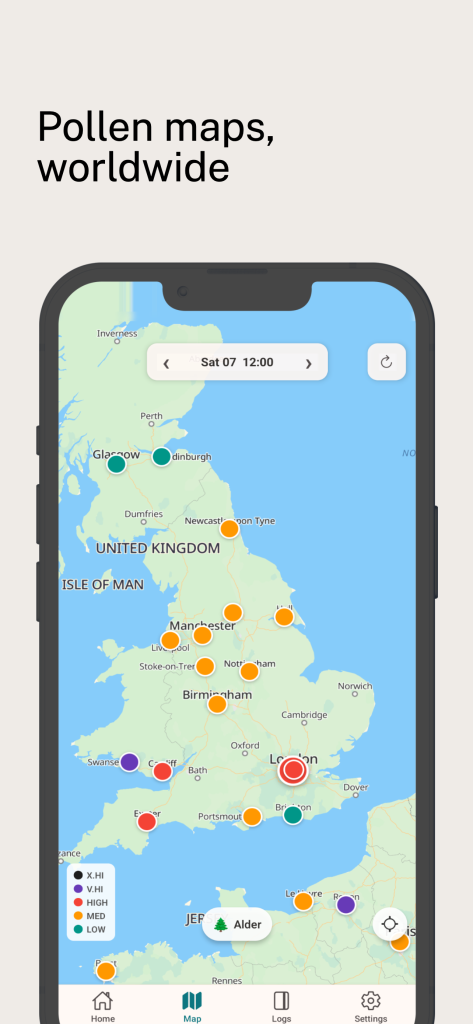 - Track different types of pollen (trees, grasses, weeds)